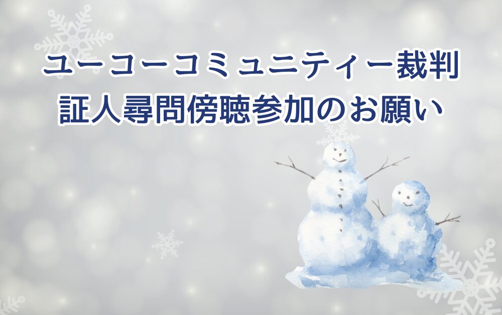ユーコーコミュニティー裁判(証人尋問)傍聴参加のお願い
